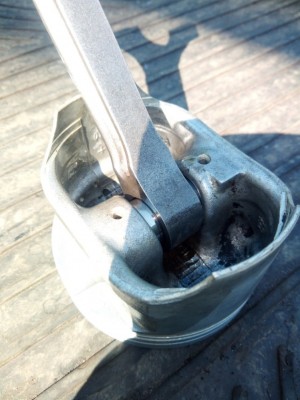 2 Badun: U benzinových motorú 1,6 je čep nalisován na pevno v ojnici a kýve se v pístu a ted to divný:to co se vydře (o cca 0,1-0,3mm)je právě ten tvrdej ocelovej cementovanej čep (viz.foto) a hliníkovej píst to skoro vždy přežije(kdo mě vysvětlí proč má u mě pivo).