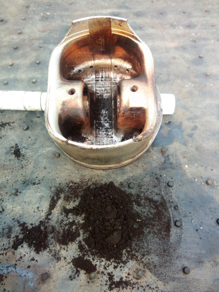 Ahoj všem,přikládám pár fotek pro ilustraci jak vypadají písty po vytažení ,v prúběhu čištění v ultrazvuku, přečepování a těsně před zpětnou montáží.(Tohle byl trochu extrém,kýbl karbonu a čepy obroušený o 0,35mm,zřejmě provoz na uhlí.typ SYDA)Hlavně je hezky vidět ucpaný mazací kanál čepu.