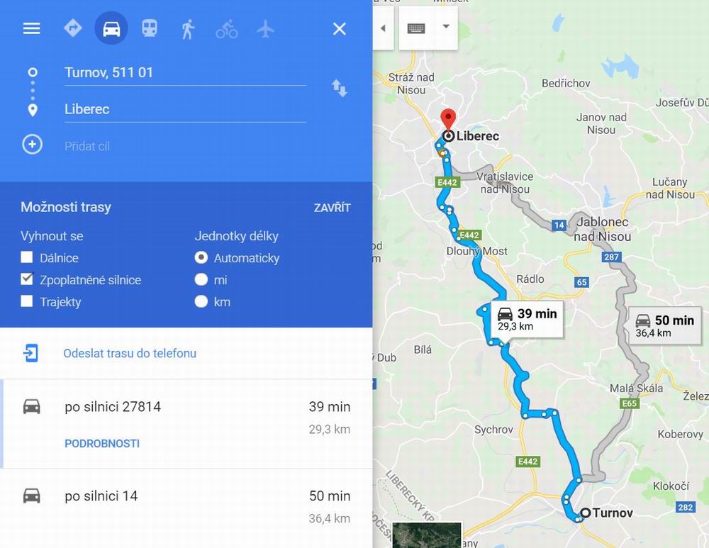 To same Liberec - Turnov - ani google to dodnes nevi