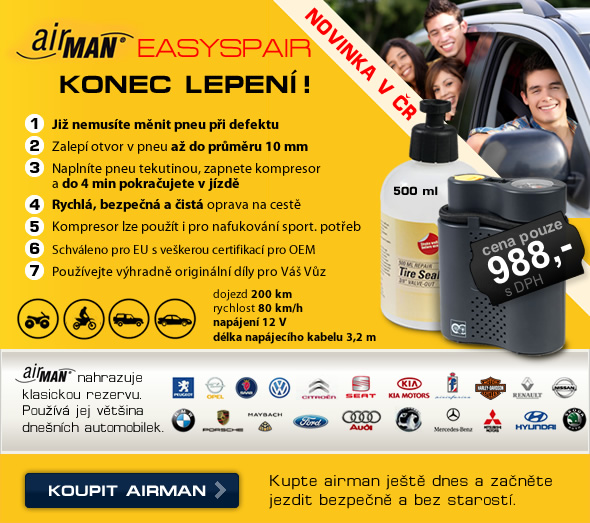 Já na doporučení kupoval sadu v Globusu, má kompresorek a stála tísu. Kamarád s tím kompresorem nafoukal prý už tak 10 pneumatik a s tou chemii opravil dvě píchlá kola, náplň se dá doobjednat.