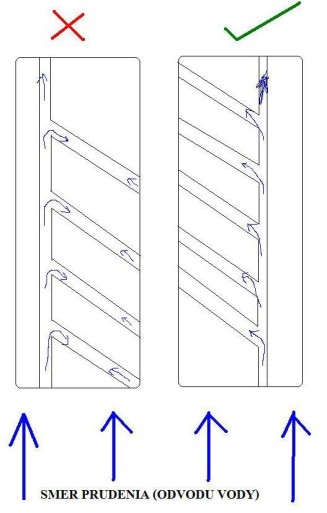edit: jedine co ma napada, ze by prud vody nesiel jednym smerom, ale akoby kolmo z hora. v tom pripade by to bolo jedno ktorym smerom su odvodove kanaliky