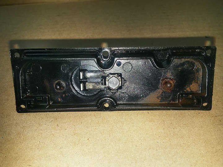 Rozebral jsem to madlo s mikrospínačem. Topilo se to v krémové vazelíně. Mikrospínač byl podle mého přesvědčení nefunkční, šroubovákem jsem ho lehce vypáčil ven a po shlédnutí, že pod ním jsou pouhé tenké zaoxidované mikroplíšky, které se už nejsou schopny navzájem dotknout svým 0,1mm kontaktem, jsem je vyhodil včetně mikrospínače.