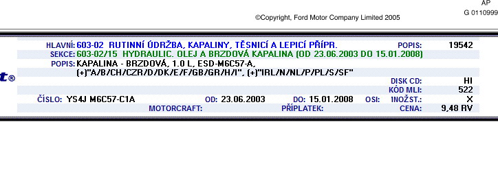 2. vyhledání náhradních dílů na vozidla Ford dle VIN