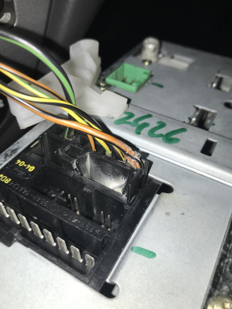 Sestra měla 6000CD RDS E-ON ve svém FoFo 1, ten ale přestal před měsícem kompletně fungovat. Již dříve byl problém s CD mechanikou, kde bylo X let zaseklé CD, které se mi "násilím" podařilo vytáhnout, avšak samotný mechanizmus již od té doby nefungoval. Tento týden jsem se tedy snažil zprovoznit rádio, které nejevilo žádné známky života. Rádio jsem z palubní desky vytáhl a překvapivě jsem našel přepálený napájecí kabel, viz. foto. Zajímavé na tom je, že žádná pojistka nebyla přepálená, tak snad to byla chyba samotného autorádia a ne kabeláže.