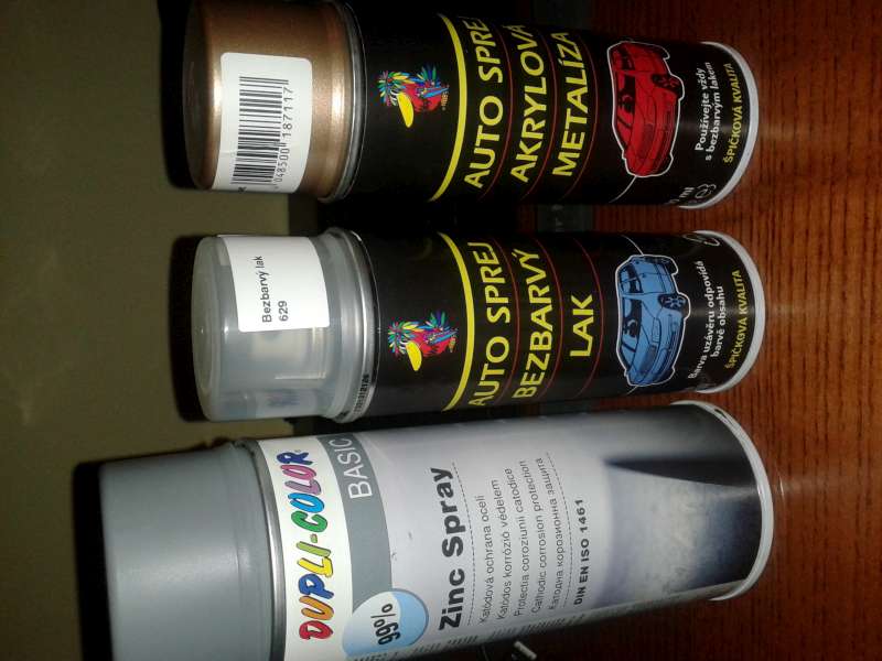 Já ten zinkovej sprej mám, pak základ a barvu... Před zinek ještě odmaštění... Snad to bude fungovat aspoň chvíli.