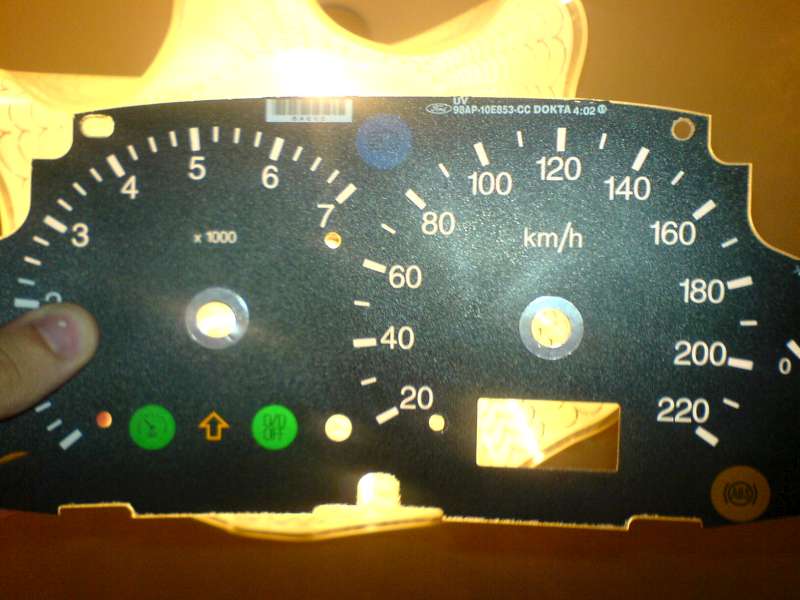 treba vybrat budiky(navod tu niekde je),potom treba dat dole ten priehladny silt(to zvladne aj male dieta-4 zapadky),dalej treba odobrat rucicky(mne pomohla vidlicka).No a teraz je potrebne dat dole foliu foto c.1. odporucam to robit pomali,po kusockoch to odliepat,aby sa to nezlomilo,ide to celkom v poho len rukami.Je dost mozne ze po ztrhnuti folie ostanu na tom plaste kusky farby. foto c.2.POZOR.nepouzivat ziadne chemikalie(ide to zoskrabat prstom),samozrejme ja som pouzil priatelkin odlakovac a ten nejako zreagoval a vytvoril matny povrch(dako to musim vylestit).Na samotnej folii je zospodu zelena farba,ktoru treba odstranit,je to dost makacka lebo na tej zelenej farbe je taky lak a na nom lepidlo.ja som to robil odlakovacom a tycinkami do usi(cca 45min a minusom ich asi 40) foto c.3.je lepsie robit to ciselko po ciselku,palicku po palicke,lebo ked to ocistite cele (vid.predchadzajuce fotky)tak to jemne presvita.treba sa s tim vybavit.Ak to bude presvitat dobra zachrana je centropenka,ale aj ta jemne presvita. ja som si este cervenou centropenkou zafarbil policka na tachometri,ale mam pocit,ze je lepsie pouzit daku cervenu foliu.No a ked to setko mate mozte dat spat foliu a zalozit rucicky.a uz len ostava vymenit zlte ziarovky za ine.napr modre.alebo ledky ako to idem riesit ja.este cakam kym mi dorazia,potom nafotim ako je to riesene,lebo tam nedavam 3 ledky ale 5(vyvrtam duri a priletujem kabliky) Dufam ze dakomu toto pomoze.