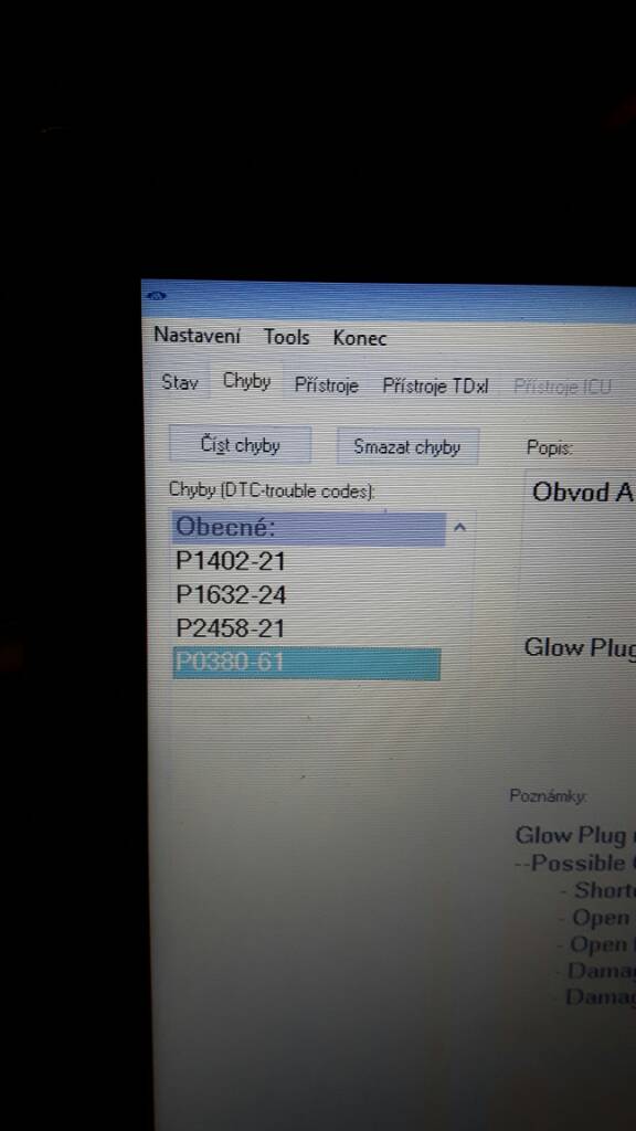 Po vymazani zustala P0380 - zhavky a U1900 servo