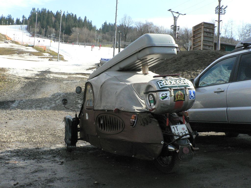 Pokud ten hadrak nemel vpredu ven z kapoty otvory pro nohy, tak s tim Horst nemohl jet.