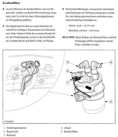 Pri vymene filtru musi byt smer sipky zachovan a filtr musi byt naplnen palivem.