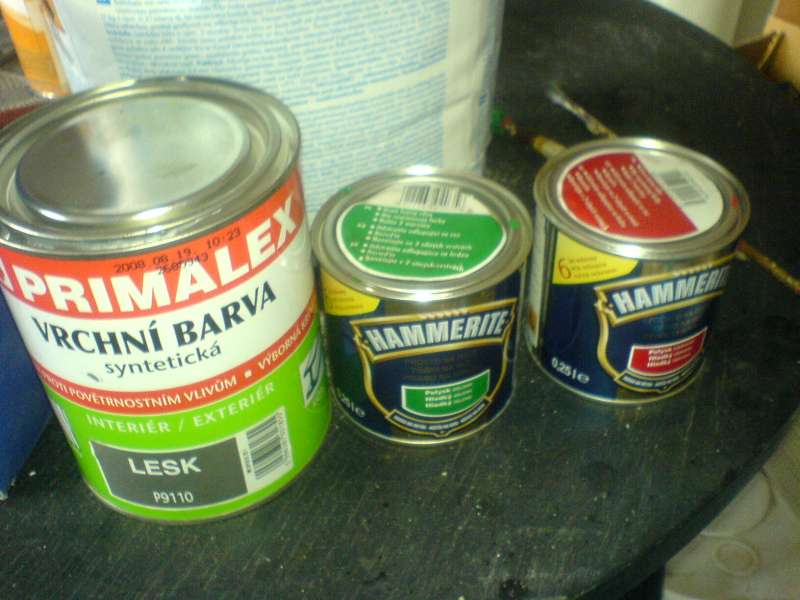 Tak jsem se do toho dnes taky pustil. Světle modrá barva Hammerite (tmavě modrá se dělá jen kladívková a tu jsem nechtěl), aspoň to trošku půjde vidět