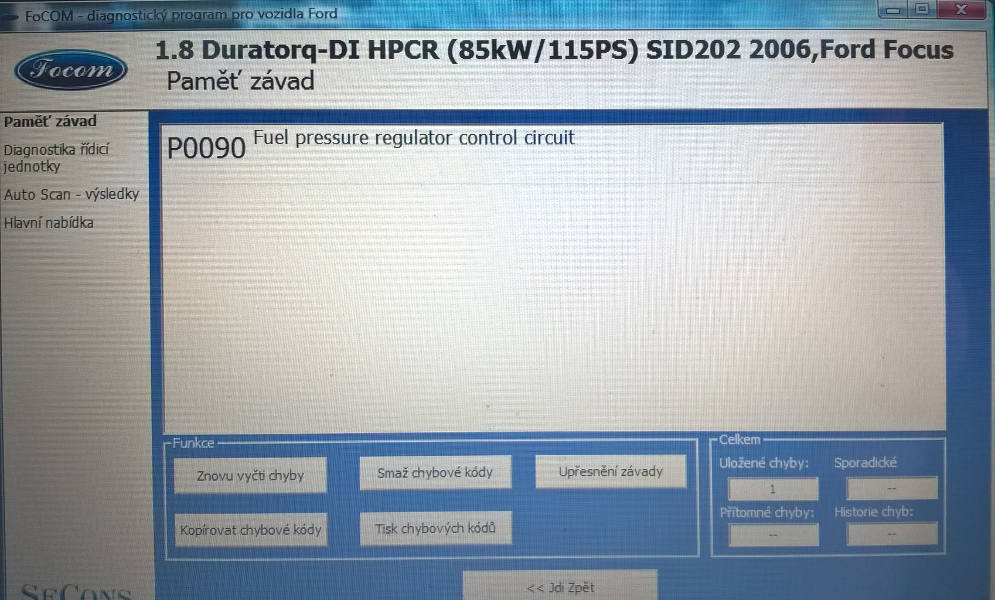 Takže mám update: došel mi z Číny diagnostický kabel. Sice nepracuje s ELM Config, ale dodaný software (Focom) se rozběhl a ukázal číslo chyby. Bohužel se jedná o jinou chybu, než ukázalo u Fokiho (P0089-61 vs. P0090).