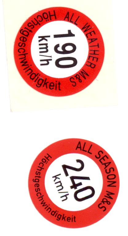 Co sa tyka nalepky a zakonov. Obecne, co nie je zakazane, je dovolene. Prikazane je mat iba oznam, ze pri zimnych pneu (letne musia mat v-index podla konstrucie auta) je max. rychlost obmedzena na hodnotu XX.