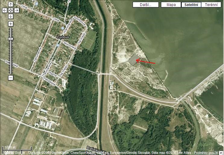k tej mapke: musis ist smer Danubiana (to je ta vystavna sien), po ceste su vidiet tabule. Lepsie povedane smer Rusovnce, ked z nich vyjdes tak je chvilku dvojprudovka a tam je odbocka smer Danubiana alebo Vodne Dielo Gabcikovo. Odbocis, pojdes stale rovno po tej ceste az prides k odvodnovaciemu kanalu a pojdes hore na hradzu. Tam priamo hore odbocis dolava na cestu, co ide po hradzi (davaj tam pozor, hrozne zle je tam vidiet), prejdes okolo bufetu asi 20 m a odbocis z hradze doprava na taku asfaltku a si tam. Takze smer Danubiana - Gabcikovo, hore na hradzi dolava a potom hned doprava.
