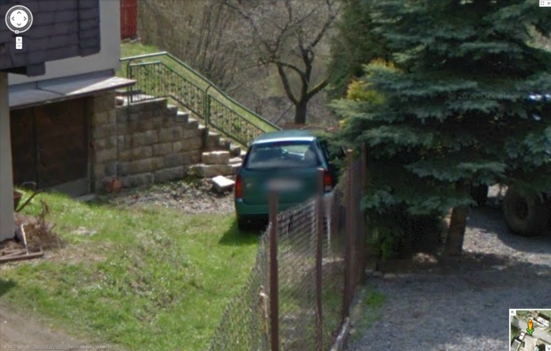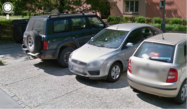 Já měl tu smůlu, že u nás bylo zrovna blokový čištění a to si přeparkuju do sousední ulice, kterou ale fotili v úplně jiný den. Na satelitním snímku mám ale před barákem, tenkrát ještě, obě auta