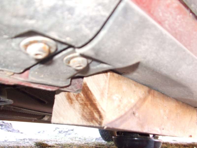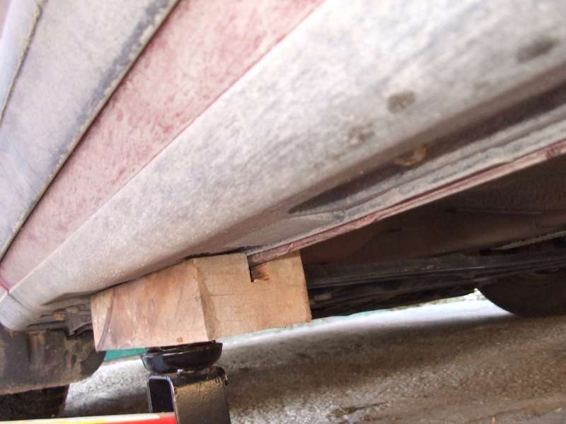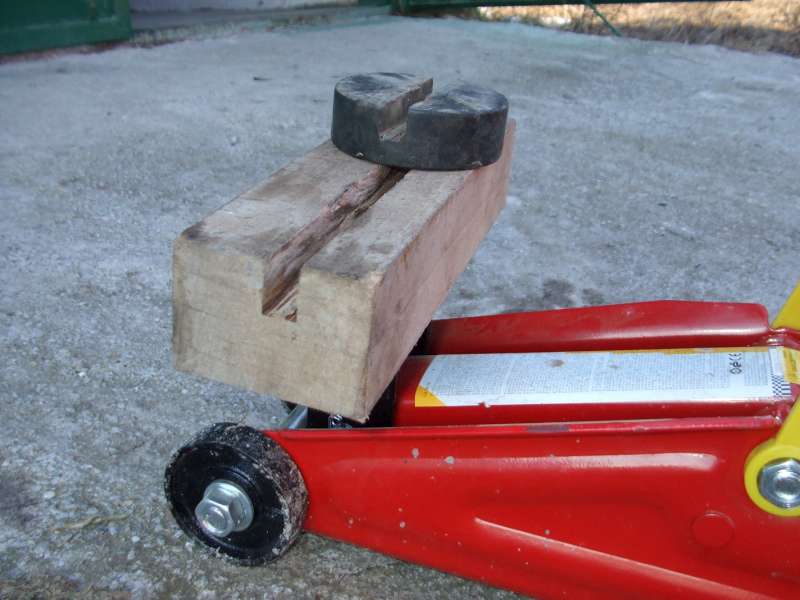 Samotné zvedání auta jde jak pomásle, zvedák je velmi nízky(kolem 8cm) což jsem vyžadoval, protože po snížení Eibachama se tam jen tak něčím nedostanu. Mezi zvedák a karoserii jsem dal obyč hok.puk a auto bylo nahoře nežbysřeklšvec.