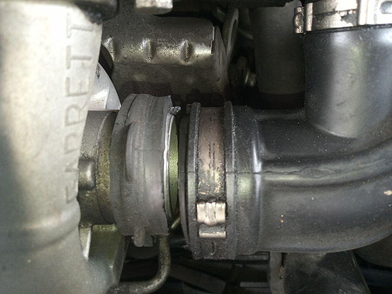 Edit: Tady. Upadlé sání... Vyndal jsem trubku, která je vevnitř hadice a dělá pevný základ pro sponu, co je na fotce uprostřed. Netuším, proč se to, co teď po "opravě" chybí, nedá sehnat samotné. No, uříznu kus hadice vhodného průměru na turbo, nacpu do hadice na obrázku, kam vrátím tu kovovou trubku a bude opraveno.