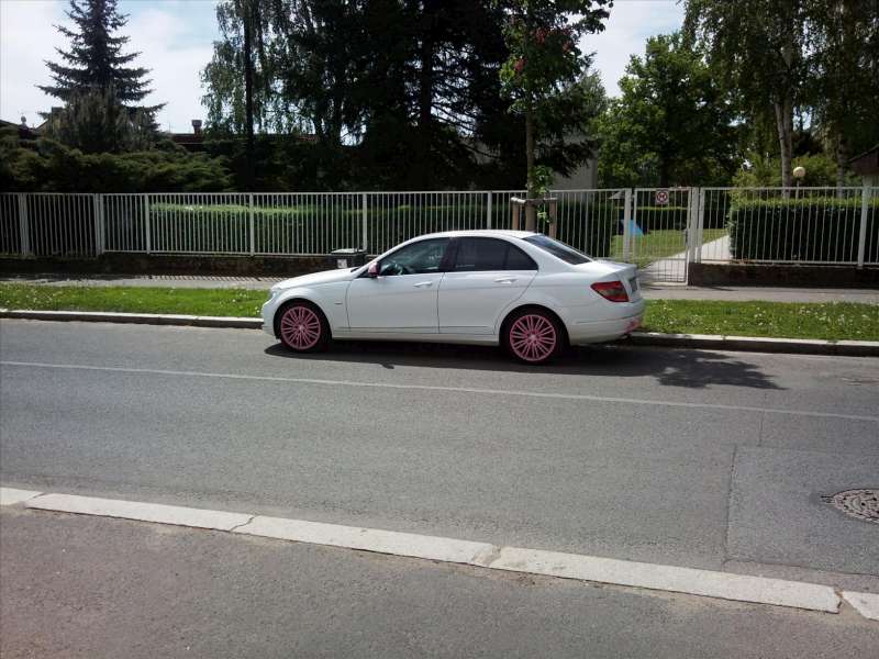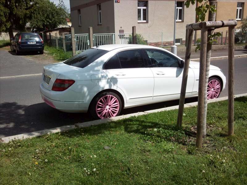 kdyby prohodil barvy (auto ruzove, kola bile)...