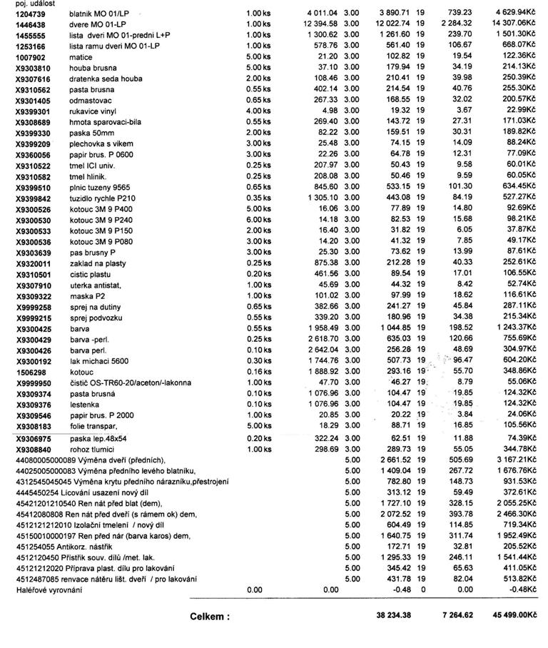 Protože mi to hlava nebere jak se přišlo na částku 39t proplacených, nebo dokonce 45,5t vystavených na faktuře za opravu blatníku...
