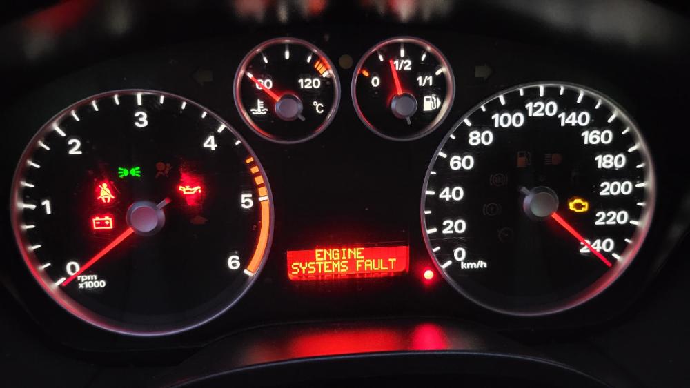 Ahoj. Nevíte kde by mohl být problém. Jednou sem jel z práce z ničeho nic zhasl motor a už nejde nastartovat. Motor normálně točí, ale nechytne. Ještě když otočím na kontrolky ručička tachometru vystřelí na rychlost 240km/h viz. foto. V budíkách problém nebude to už jsem řešil s borcama s HW servisu.