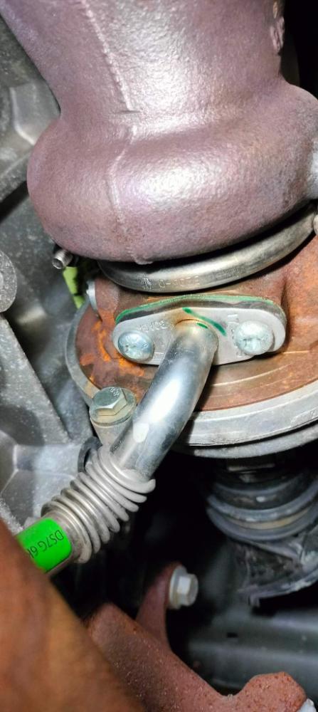 Tak jsem byl dnes ráno ještě u kolegy a nepatrný únik je kolem turba(viz foto).Ovšem může to být ještě někde jinde ale nic jsme už nenašli.Vyfuk je takový mastnejsi, což by přispívalo tomu, že se únik spaluje ve výfuku.Meli jsme to natlakované půl dne a žádný unik.V autorizaku zítra jim to ukážu a řeknu ať se zaměří i na to.Samozrejme se zápisem do protokolu kvůli případně reklamaci.