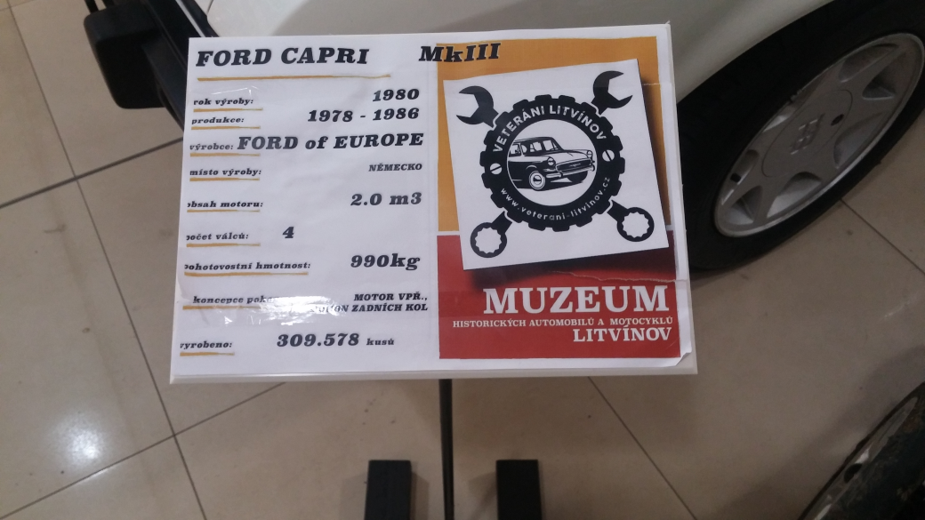 V sobotu jsem byl na skok v obchoďáku v Litoměřicích, měli tam pár veteránů, mezi nima i docela hezky udělané trojkové Capri. Víceméně holátko výbava a umrněné čtyřválcové Pinto, ale ten obsah podle cedulky, to by byl trhač asfaltu....