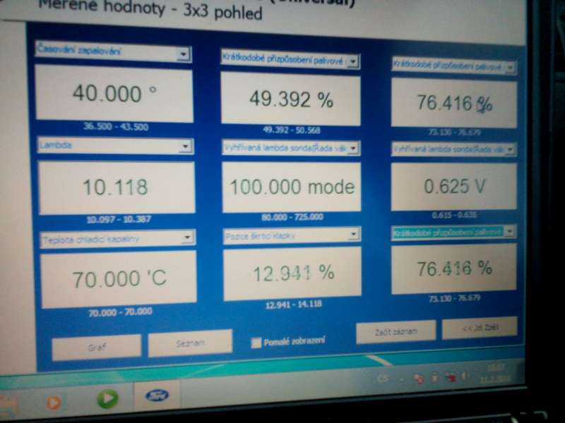 Na diagnostice to už bylo mnohokrát, nic se v závadách nenašlo, až na jeden údaj, který se mechanikovi nezdál: časování zapalování: 40st, údajně má být kolem 15-25. viz. příloha z diagnostiky (motor ještě nebyl úplně zahřátý)