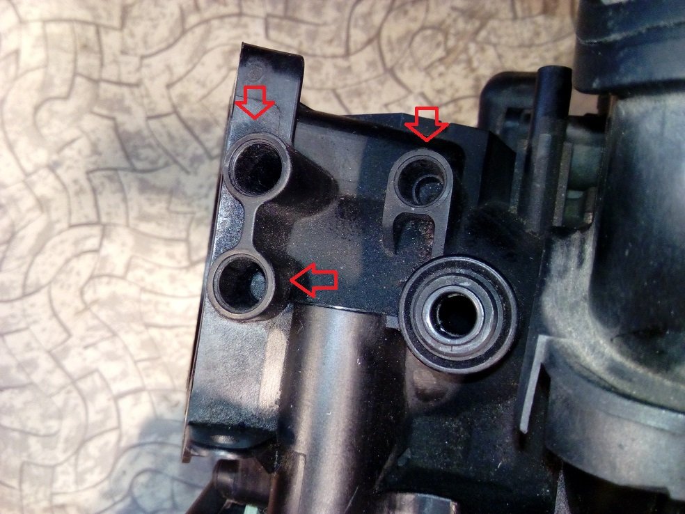 Ještě jsem provedl další úpravy: zalepit epoxidem další 3 závity, k uchycení konzole od bovdenu ovládání škrtící klapky a ještě provrtat sání v místě. Kde je připojená hadička podtlaku od lišty s palivem ke vstřikům motoru. Zalepit tam trubičku dle průměru původního sání.