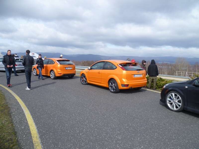 Ford Focus II 2.5T ST, 3 dv.,Electric Orange byl, je Golf GTI VII Performance Pack