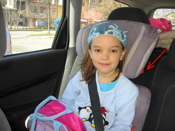 jamaka: co se týče té druhé, tak fotku přikládám. je to sedačka Baby Dream a pás je protažený přes plastové "oko" (viz. šipka) to samé je samozřejmě na druhé straně. Dcera má 6 let a používá ji od svých cca 4 let a NO PROBLEM.