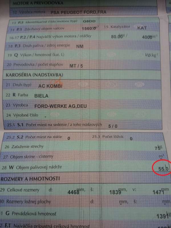 Na mojom Focuse som si neni isty, ze aku nadrz mam. V technickom preukaze je 55l