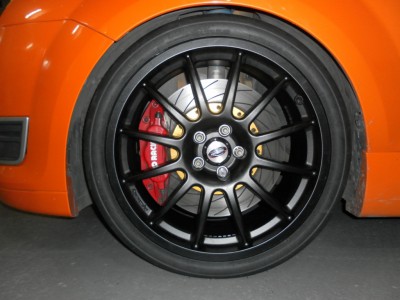 Focus II. ST - r.v. 2006, úprava Wolf Racing (340 PS,545 Nm), Bilstein B16 Gewindefahrwerk PSS9, AP Racing (kotouče 362 mm, 6 pístků) - desky Raybestos směs ST31, samosvorný diferenciál Quaife, výfuk MILLTEK turbo back, Semi Slick TOYO R888