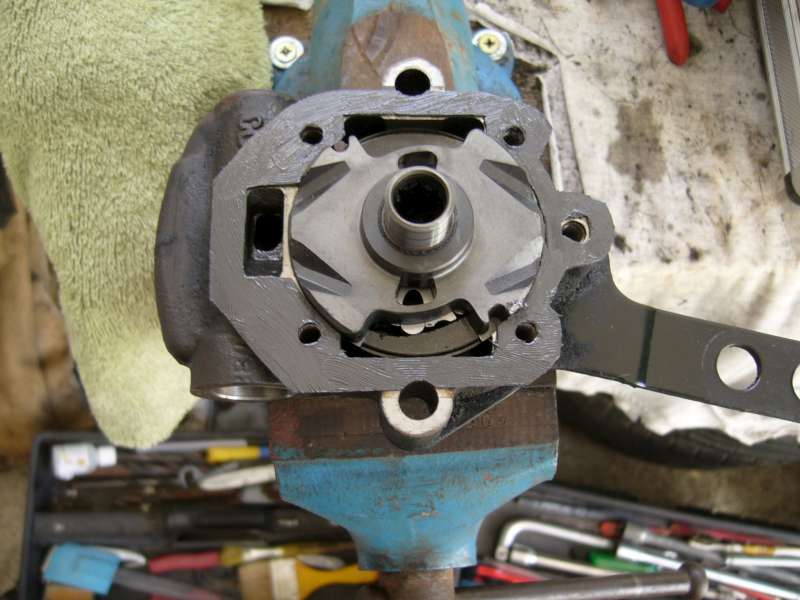 na první fotce, je po očištění a znovu-nastartování vidět, kde začíná propouštět těsnění "těla" serva ... tak jsem ho vytáhnul a rozebral(říkal jsem si, že ho zkusím přetěsnit, a v nějhorším případě budu muset koupit jiné) ... původní těsnění zjevně skoro mrtvé ... po hledání na netu a konzultaci s některýma odborníkama (ballu, djdekl atd.) čím to přetěsnit jsem nakonec zvolil "Klingerit" jako těsnící materiál ... protože se dají koupit různé tloušťky ... nakreslil dle plastového nosiče původního těsnění tvar ... nožem opatrně vyřezal s vůli směrem "ven" ... dle rad namazal grafitovou vazelínou a poskládal ... nejdřív dotáhnul jemně a pak momentovým klíčem do kříže postupně utáhl pořádně ... nakonec jsem ořezal zbytky těsnění, kolem čerpadla a namontoval ... náplň jsem zatím pouze dolil částečně novou s tím, že když to po nějaké zkušební době nebude téct, tak vyměníme servo-olej komplet ... až bude jistota, že nemizí ... zatim to vypadá dobře :)