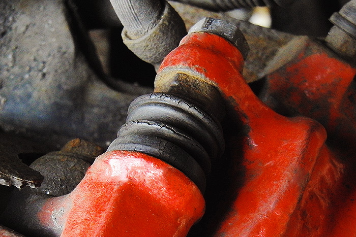 Na prachovkách byly již po měsíci viditelné prasklinky a po třech měsících praskly komplet. Našel jsem také popraskané těsnění pod pákami ruční brzdy. (viz foto)