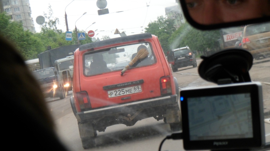 ruská vynalézavost. Když nemáme stěrač tak použijeme alespoň rákosovou metličku :D