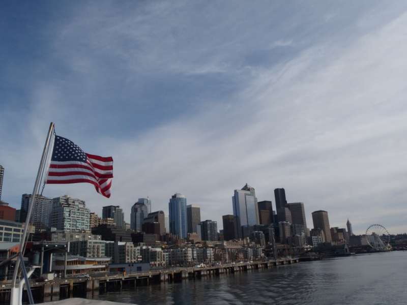 Cestou do seatllu se navigace opravdu nenadřela, jelikož jediné co řekla bylo: "za x metrů odbočte vpravo na nájezd a poté pokračujte 560km" pak už jen ticho. Cesta tam nebyla problém, sice to nebylo ideální na letních gumách, ale šlo to. Po příjezdu do hor se otevřel nádherný pohled na zasněžený vrcholek neznámé hory. Ovšem musel jsem pokračovat, jelikož jsem měl přesně naplánovaný časový harmonogram, abych vše stíhal. Že už se blížíte centru poznáte snadno, podle rozhledny Space Needle, která ční vysoko nad střechy většiny okolních domů. Tak, rychle najít parkoviště a "vzhůru". Z rozhledny je nádherný 360° rozhled po celém městě a přilehlém mírně hornatém okolí. Čas běží, takže rychle se pokochat výhledem a pádit zase dál. Dalším bodem programu byla okružní plavba lodí po přilehlém zálivu s fantastickým výhledem na celé centrum a také na sousedící nákladní přístav. V mém plánu začínaly vznikat značné trhliny když jsem narazil na nejednu uzavírku při cestě do přístavu. Ovšem nakonec jsem se do cíle dostal a z parkoviště si nejspíš udělal světový rekord v běhu na 1km. Všichni na palubě tak vzhůru na moře...