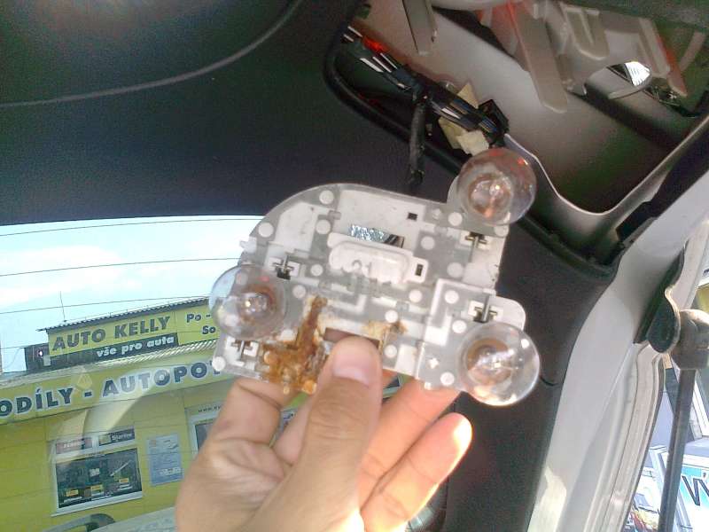 Zdravím. Příčinou může být vadná tato deska. Byla silně zoxidovaná a něco na ní odešlo. Je to pravá strana na dveřích kufru. Sháním proto rozbité světlo, ze kterého bych si desku demontoval. Předem díky za případnou radu kde sehnat.
