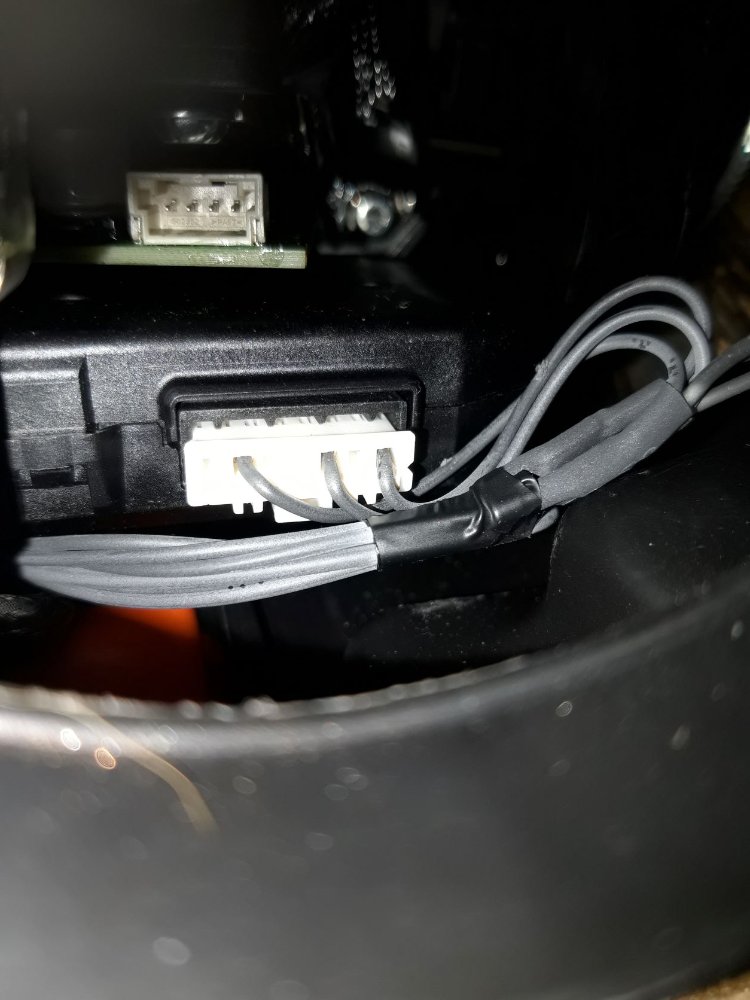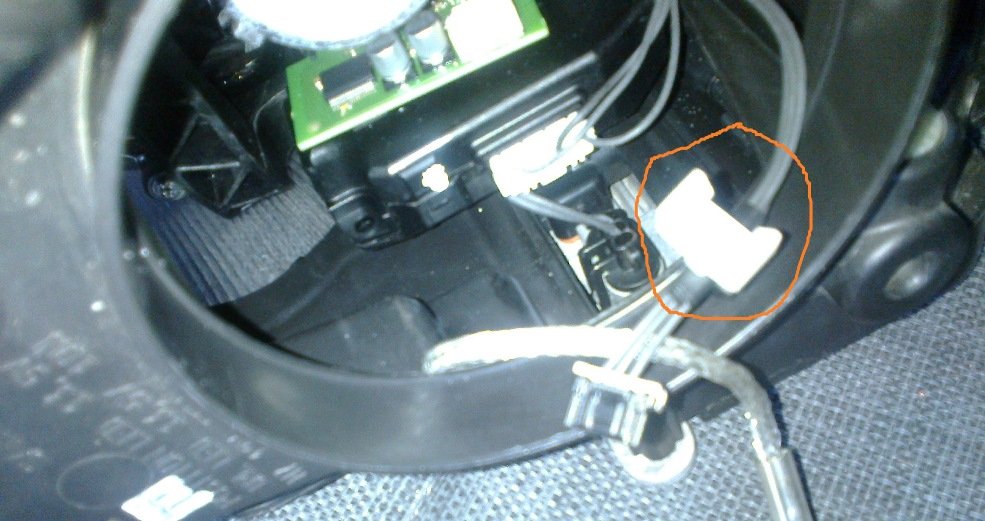 Byl jsm za ním. Prý byl rozpadlý konektor a jeho ustřižením zachránil zbytek elektroniky před zkratem. Myslím, že tam byl upadlý drát od pohybu čočky, jak tady píše kolega. Horší bude, že nevím kam který vodič příjde. Všechny jsou černé bez značek a do světla nevím jak se dostat. okopírovat pravé asi nebude dobře. Možná budou každé jinak zapojené.