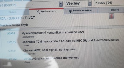Zkoušel jsem to kontrolovat, ale nic neobvyklého jsem , tam neviděl. Když to spojím, tak se objeví jiná hláška systému...nefunkční ESP, nefunkční přenos k palivoveho