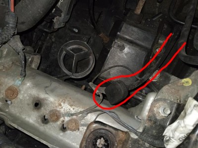 Z výroby je to nasazené na hraně silentbloku převodovky, pod kastlikem na baterii.