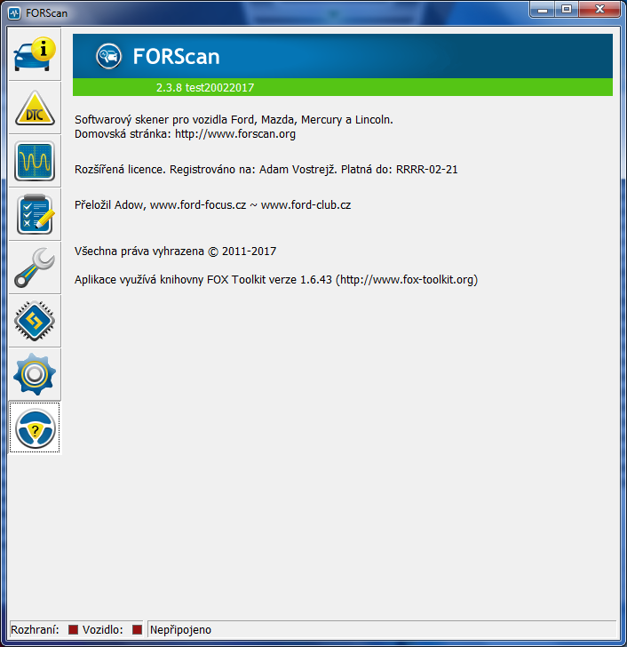Pouzivam ForScan od roku 2013. V lednu 2015 rozdelili vyvojari licence na zakladni a rozsirene. Od unora 2015 jsem na foru ForScanu. Zpocatku udelovali licence po mailove zadosti (opakovana zadost byla mozna), pote vytvorili generator licenci primo na foru. Staci se zaregistrovat na forum ForScan a vyuzit primy link na vytvoreni licence: