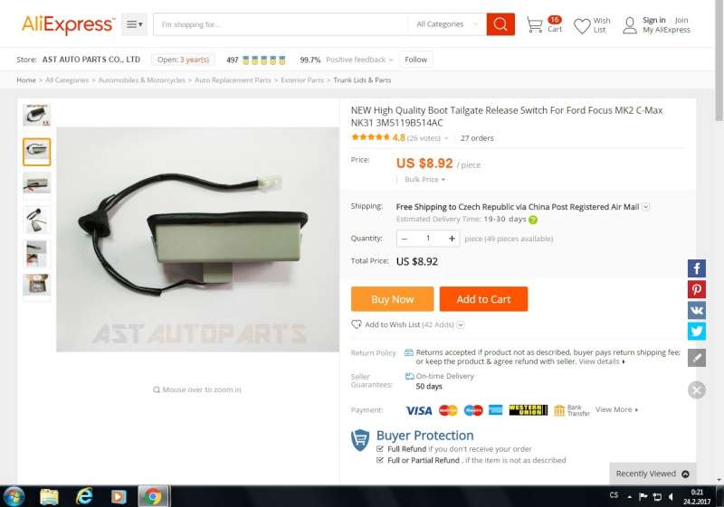 Tak ten Aliex, to je řešení pro někoho kdo se v tom nechce vrtat, a nebo za to nechce ve Fordu dávat litr
