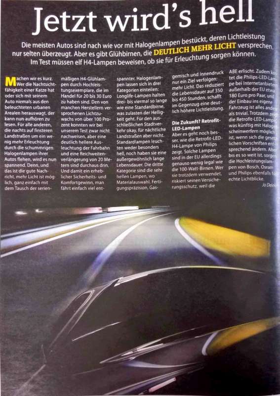 Dostal jsem nemecky casopis s porovnanim zarovek (H4). Pro zajimavost je ve srovnani i 100W zarovka a LEDka.