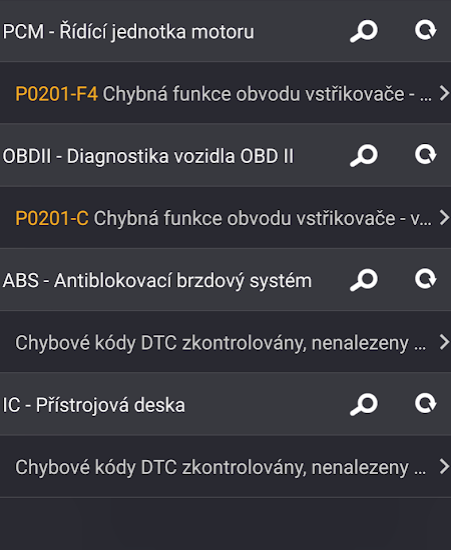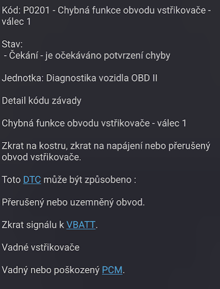 Auto sem píchl na diagnostiku a vypisuje chybu P0201-E4 - Chybná funkce obvodu vstřikovače válce 1.