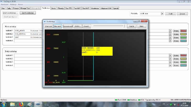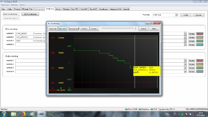 po výměně filtru DPF a resetu mi "Distance Until DPF ash full" odpočítávalo km od 100 000km.Po ujetí 2000km od výměny vyčištěného originálního DPF. Protože při první výměně DPF (nový DPF) jsem měl zkušenost že při ujetí 2000km se změnilo odpočítávání km na "Distance Until DPF ash full".(Proč jsem měnil znovu DPF byla spálená hadička na kontrolu tlaku před DPF a po zjištění a výměně už bylo pozdě a filtr se rozpad).Protože jsem to tenkrát hlídal,tak mě zajímalo jestli se to bude chovat stejně a stalo se to samé a to po ujetí 2000km se na "Distance Until DPF ash full" změnilo odpočítávání km.Vyčítal jsem to při ujetí 1950 km po resetu a výměně DPF a to odečítalo km od 100 000 km takže tam bylo 98050km. Po ujetí dalších 90km jsem nechal znovu vyčíst a zjistil jsem že "Distance Until DPF ash full" ukazuje cca od 400km a km od té doby přičítá.Při každém měření to přičítá km,ale nerovná se to skutečným ujetým km.Přitom interval regenerace filtru probíhá pořád po stejných km,pohybuje se to mezi 200km - 240km.Ani rozdíl tlaku před a za filtrem se nezměnil na volnoběh.Proběhla tentokrát i kontrola vstřiků - na testovací stolici,egr ventilu - rozebrání a vyčištění (byl jen černý bez vélkých usazenin,čidla rozdílu tlaku,těsnosti vedení a čistoty intercooleru - byl bez olejea turba jen naklápěcí klapky v jednom místě trochu přidírali - zatím funguje.Tak by mě zajímalo jestli je to normální nebo ne,když po resetu (DPF) to km odečítalo a teď to km přičítá?Auto mám Ford Focus 1.6 TDCI 80Kw r.v.2009 najeto 278000 km.Diagnostiku používám Fordiag od Tomina s kabelem v 3.12. software ForDiag -1.30.06.Ještě bych přidal že jsem měl auto v servisu Ford Počátky a tam mi řekli že auto je v pořádku a u DPF mi provedli reset tak jsem znovu čekal co to udělá po ujetí 2000km od resetu DPF a zase to samé,po ujetí 2000 km od resetu DPF na diagnostice to ukázalo že "Distance Until DPF ash full" je 400km a teď to začne zase km přičítat.Jinak regenerace se pohybuje kolem 220 km až 230 km,spotřebe je průměrná 4.9 L/100km a jezdím teď krátké trasy a to 20 km do práce a 20km z práce.Že by se za autem nějak kouřilo to nepozoruji.