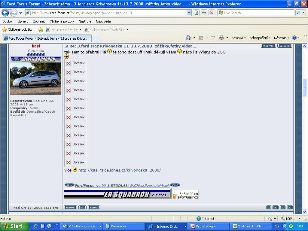 Jde o to,že pokud je někdo zvyklý odjinud dávat pouze odkazy,většinou to dělá i tady.Prostě umístí fotky na jiný "free" server,kde mu poskytnou místo a sem dává obrázek jen přes odkaz.Bohužel ty obrázky tam dlouho nevydrží...proto ve finále třeba po měsíci už nikdo žádný fotky nevidí...frantik.17 píše:..vkládám pouze touto formou a to přílohou a přiložit obrázek nebo taknějak, jiný způsob neznám, nechápu proto upozornění na toto vlákno...![]()
