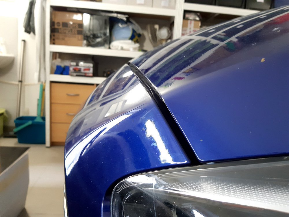 . Slícování u světel, se kterým jsem spokojen a spára kapoty a nárazníku 6 mm na krajích a asi 7,5 mm uprostřed. Líp už to asi nejde.
