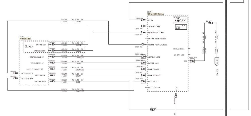 - zkusit vzít +12V ze snímače otevřeného zámku dveří. Toto by bylo asi i elegantnější řešení, možná by to chtělo spínání přes relátko. Netuším, ale z kterého pinu těch 12V vzít, tak aby po otevření svítily jen otevřené dveře a se zavřením se hned zhasly. Vycházím ze schematu v příloze (modul na straně řidiče).