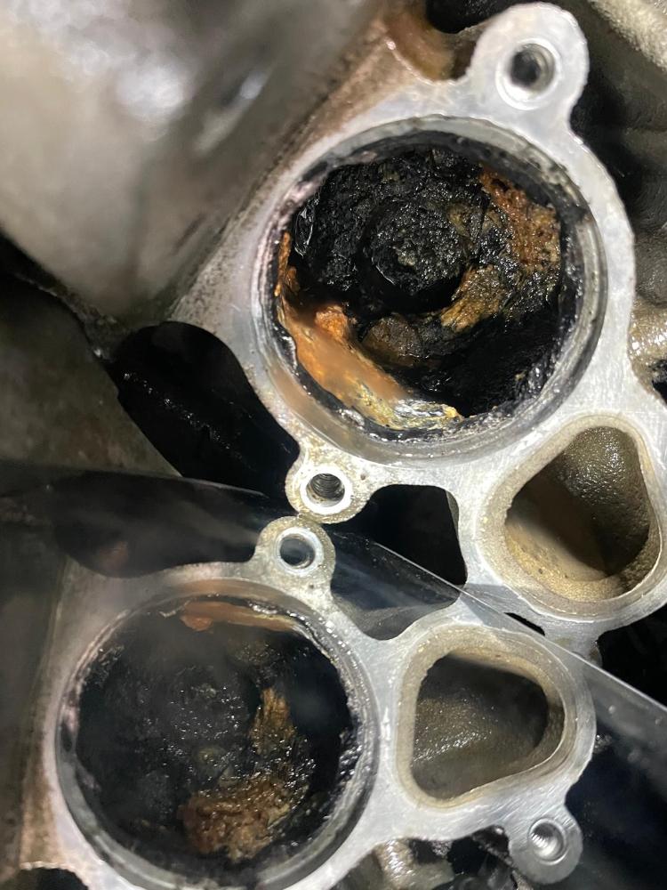 6) Přiruba na bloku motoru je ožraná, rozpadá se okraj