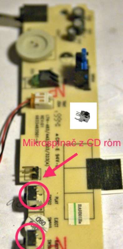 Zdravím vás,tak jsem řešil stejný problém,stačilo jen vyměnit nefunkční mikrospínač,za mikrospínač z rozbité CD romky,(viz příloha).https://www.gme.cz/p-ksm632b