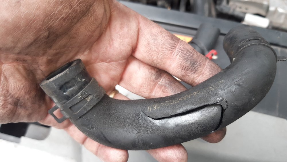 Nemám 2,0l ale 1,8l 92kW a nevím, jestli je to v motorovém prostoru trochu jinak uspořádáno (hadice je ale stejná jako pro dvoulitr). V každém případě zespod jsem se k tomu vůbec nedostal...jen shora... vyndal baterku, škrtící klapu, hadici chlazení a pár dalších věcí, uvolnění kabelového svazku nad sáním.... a pak jsem se trápil s dlouhými kleštěmi, peánem, drátem pro navedení hadice atd... Drbačka hrozná, už jsem to chtěl vzdát.... čas mám daleko horší než jste psali před 10 lety... :lol: , ale dal jsem to, asi za 3h :-( .... no nic, však kůže na rukou se zahojí! :P